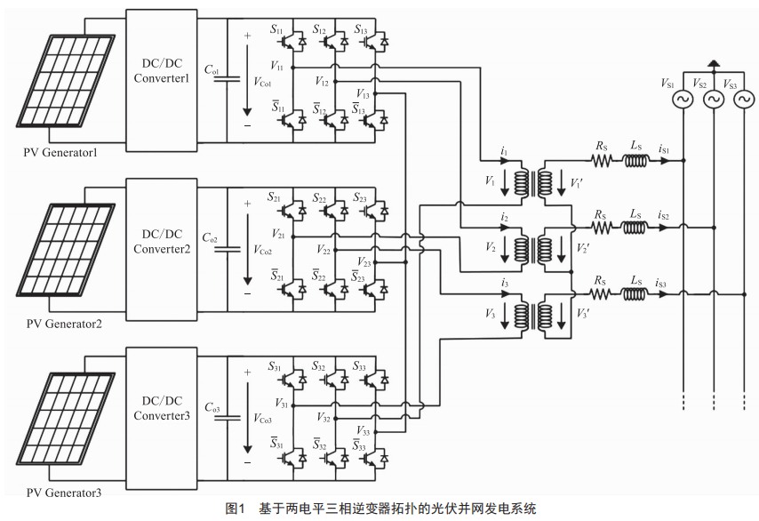 基于此,本文提出了一種基于三個兩電平三相逆變器并聯(lián)結(jié)構(gòu)的控制方法,該控制策略基于空間電壓矢量調(diào)制器的滑動電流控制方法具有很好的動態(tài)響應(yīng)和魯棒性。此外,該控制策略通過向電網(wǎng)注入不平衡電流來減少光伏發(fā)電系統(tǒng)并網(wǎng)電壓不平衡。最后,通過仿真實驗驗證了該方法的有效性和可行性。