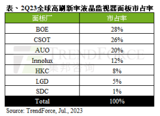 TrendForce集邦咨詢:2023年第二季高刷新率液晶監(jiān)視器面板出貨快速攀升,京東方居冠