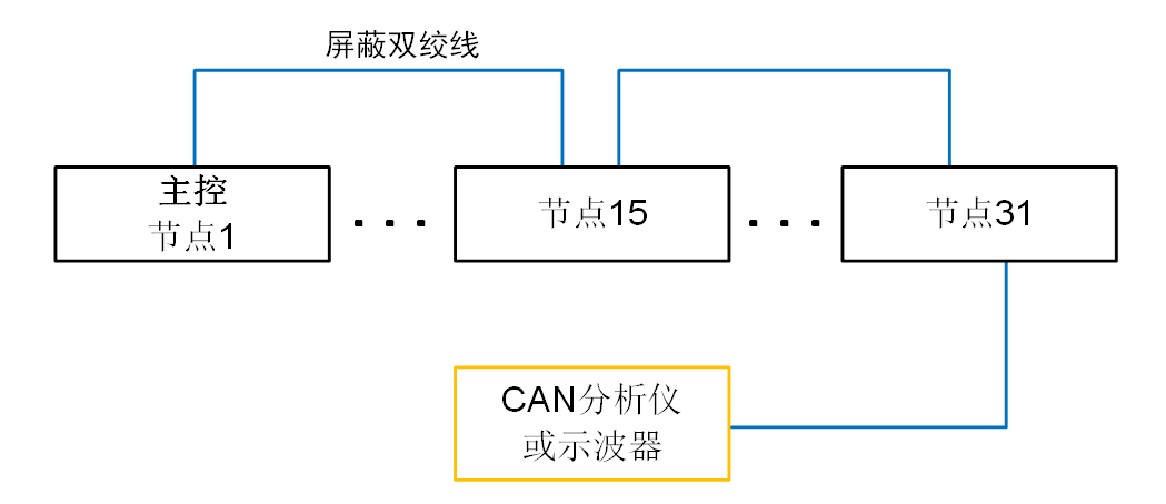 我司某工業(yè)機(jī)器人客戶反饋,使用SM1500的機(jī)器人控制板卡,在傳輸數(shù)據(jù)過程中出現(xiàn)丟幀的情況,如下圖1,客戶現(xiàn)場模擬的組網(wǎng)方式為31個節(jié)點(diǎn)的手拉手拓?fù)?,通訊波特率?50kbps。