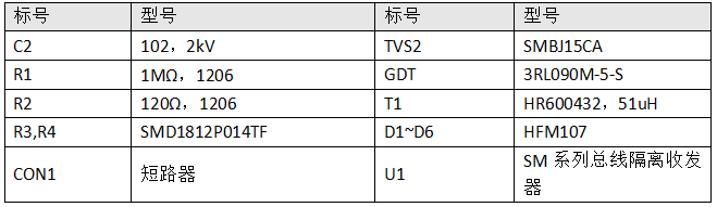 實(shí)際應(yīng)用中,適當(dāng)?shù)谋Wo(hù)還是需要的,當(dāng)需要增加防護(hù)器件時,需特別關(guān)注寄生電容的影響,盡可能選小電容器件。如圖13,為我司推薦的常用接口防護(hù)電路,該電路寄生電容可控制在十幾皮法左右,不僅滿足高速通訊的需求,同時浪涌防護(hù)能力可達(dá)到IEC/EN 61000-4-5共模 ±4KV,差模 ±2kV的要求,如表1,給出了一組推薦的器件參數(shù),參數(shù)值僅做參考,用戶需根據(jù)實(shí)際情況來確定適當(dāng)?shù)闹怠?