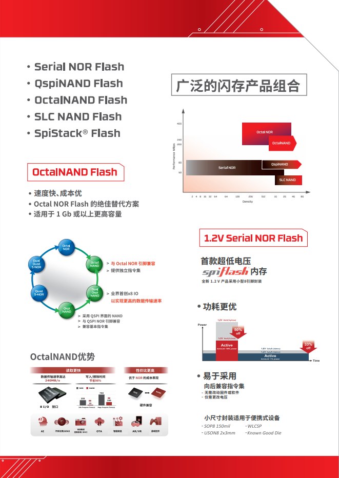 在Flash產(chǎn)品方面,華邦電子主推于汽車(chē)的是Octal NOR Flash和OctalNAND Flash,也就是8線的串口Flash。由于車(chē)用Flash的容量需求越來(lái)越大,要求更快的加載速度,4線接口的Flash帶寬逐漸無(wú)法滿(mǎn)足,因此進(jìn)一步演進(jìn)到了8線。Octal NOR有很多廠家在做,但OctalNAND產(chǎn)品目前還沒(méi)有友商推出,。這是華邦非常有特色高性?xún)r(jià)比的能夠滿(mǎn)足客戶(hù)需求的一款產(chǎn)品。據(jù)朱迪介紹,1Gb、2Gb乃至4Gb這三個(gè)高容量NOR Flash價(jià)格通常較高,但NAND成本會(huì)大幅降低。華邦的NAND為成熟SLC工藝,內(nèi)置了on-chip ECC,意味著無(wú)需傳統(tǒng)NAND的額外控制器,也能夠?qū)崿F(xiàn)壞塊管理,ECC糾正等功能,因此可以保證NAND的可靠性不比Octal NOR差,這也是華邦電子目前主推的特色產(chǎn)品之一。