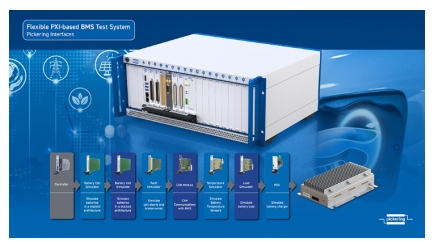 【圖為:Pickering基于PXI的電池管理系統(tǒng)(BMS)測試系統(tǒng)實(shí)例】