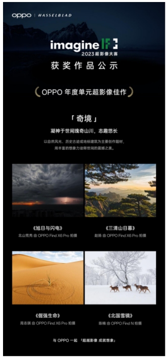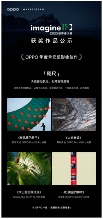 技術上,OPPO始終在探索移動影像技術的更多可能性,為用戶帶來更便利、優(yōu)質的拍攝體驗。通過極致的影像創(chuàng)新,OPPO將幫助全球用戶突破現(xiàn)有移動影像表達的想象限制,讓科技真正普惠到每一個人。大賽獲獎作品中可以看到多組由OPPO Find X6系列拍攝的作品,OPPO Find X6系列每一顆攝像頭都采用行業(yè)領先的大底傳感器技術和領先行業(yè)的光學設計,引領移動影像行業(yè)的發(fā)展。OPPO Find X6系列實現(xiàn)了影像的飛躍式進步,使 OPPO的影像能力升至全新高度,讓每一拍都有作品感。