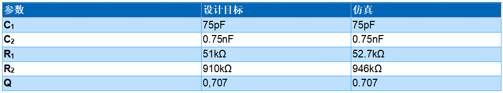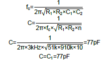 一旦選定并計(jì)算出電阻值,借助截止頻率的簡(jiǎn)化表達(dá)式可以計(jì)算C的值,然后計(jì)算兩個(gè)電容的值。
