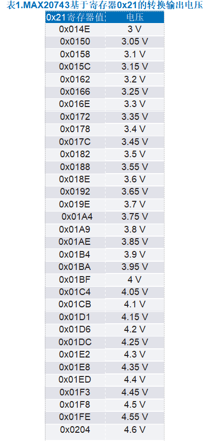 其中,x為要在輸出端施加的電壓。雖然這種方法會有輕微誤差,但也是根據(jù)電壓估算所需寄存器值的好方法。