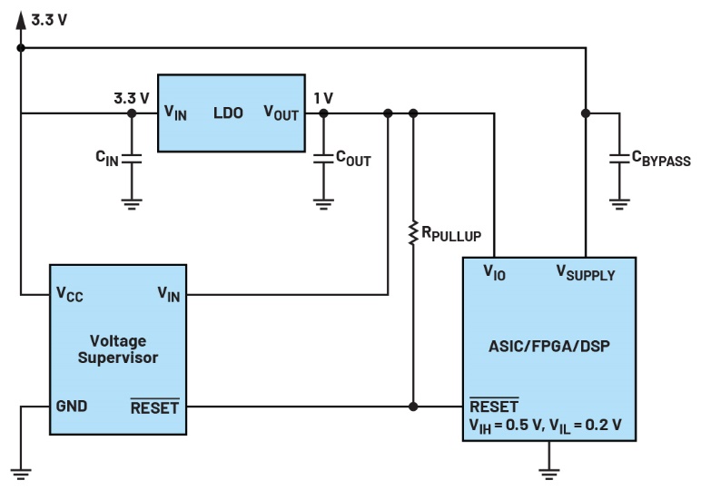 圖3.監(jiān)控器與低壓ASIC、FPGA或數(shù)字信號(hào)處理器的接口。