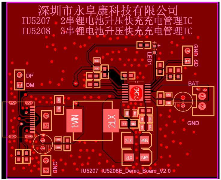 4、IU5207/IU5208 DEMO板PCB頂層設(shè)計(jì)圖