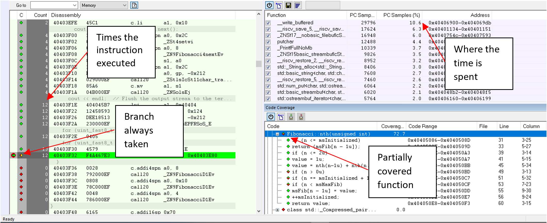 然而,跟蹤不僅僅是為了發(fā)現(xiàn)錯(cuò)誤。跟蹤還可以進(jìn)行代碼剖析、代碼覆蓋等,你可以實(shí)時(shí)了解你的設(shè)備的行為。性能和覆蓋率監(jiān)測(cè)是強(qiáng)大的功能,當(dāng)你有跟蹤功能時(shí),就可以實(shí)現(xiàn)這些強(qiáng)大的功能。如果你的帶寬夠?qū)?,甚至可以將?shí)時(shí)跟蹤流整合到你的調(diào)試器中。