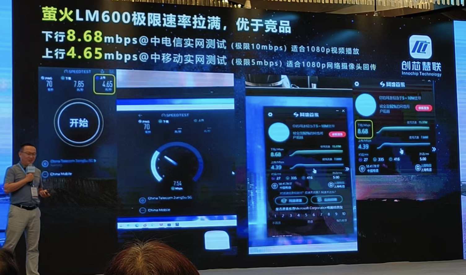 周晉列舉了一個應用案例,如果下行達到8Mbps、上行達到4Mbps,那么是可以支持1080p的視頻的。也就是說未來攝像頭不需要接網(wǎng)線,直接通過支持Cat1高速率傳輸?shù)男酒纯?。而LM600在實測中,分別達到了8.68Mbps下行速率和4.65Mbps的上行速率。