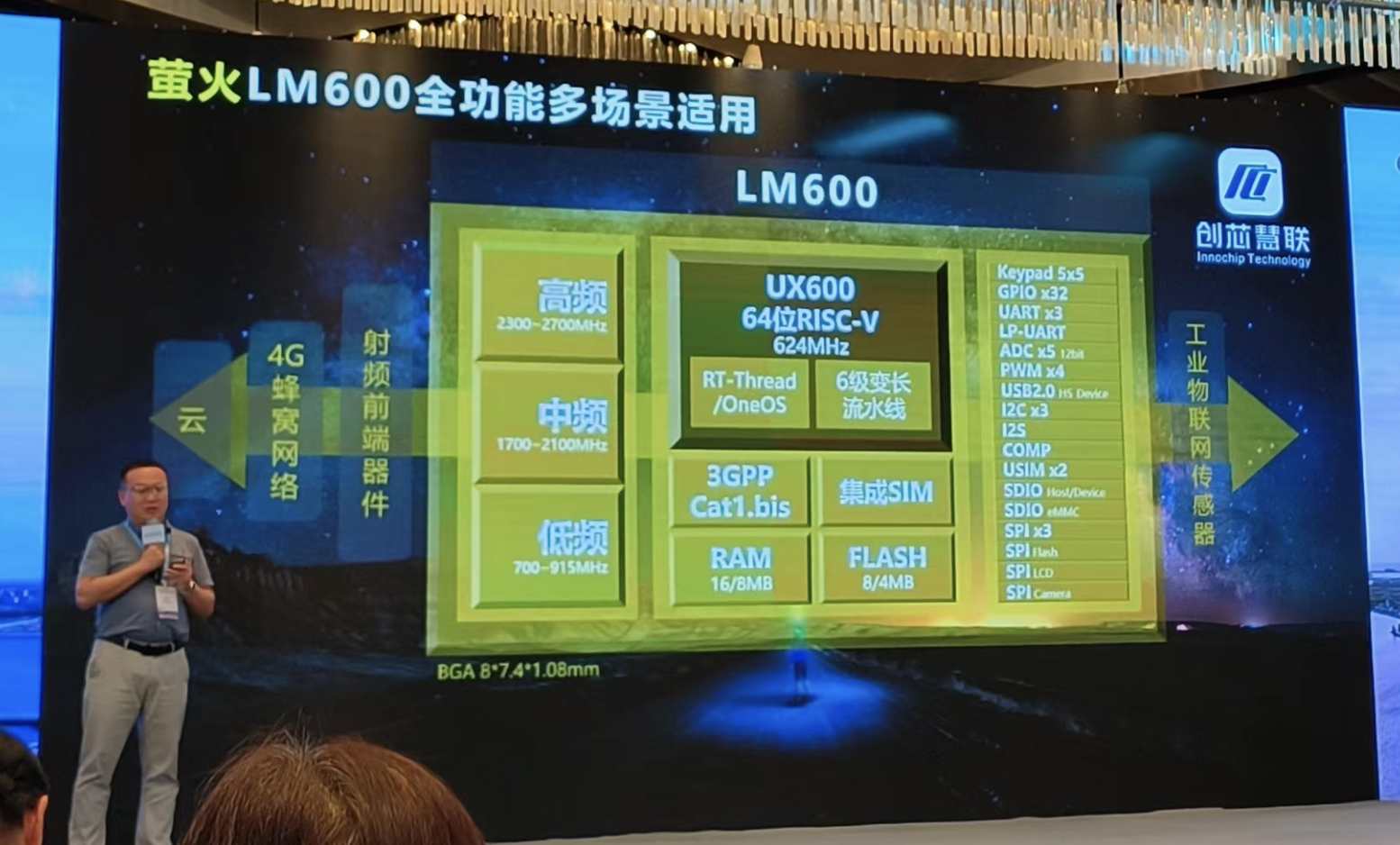 在此次論壇上,創(chuàng)芯慧聯(lián)重點介紹了其螢火LM600系列。據(jù)悉,螢火LM600是全球首款基于RISC-V的4G Cat1廣域物聯(lián)網(wǎng)芯片,采用了芯來的UX600 RISC-V內(nèi)核。