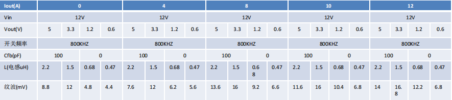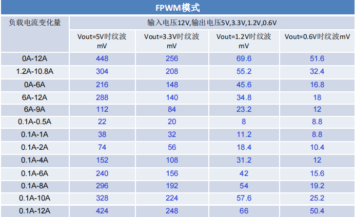 FPWM模式(動(dòng)態(tài)負(fù)載)紋波測試數(shù)據(jù)
