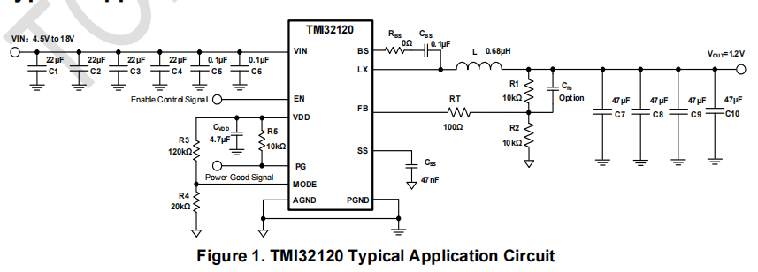 TMI32120工作電壓范圍4.5V~18V,可提供高達(dá)12A輸出電流的能力,同時(shí)具有很高的轉(zhuǎn)換效率,降低損耗也意味著其具有更低的溫升表現(xiàn),更加節(jié)能高效。