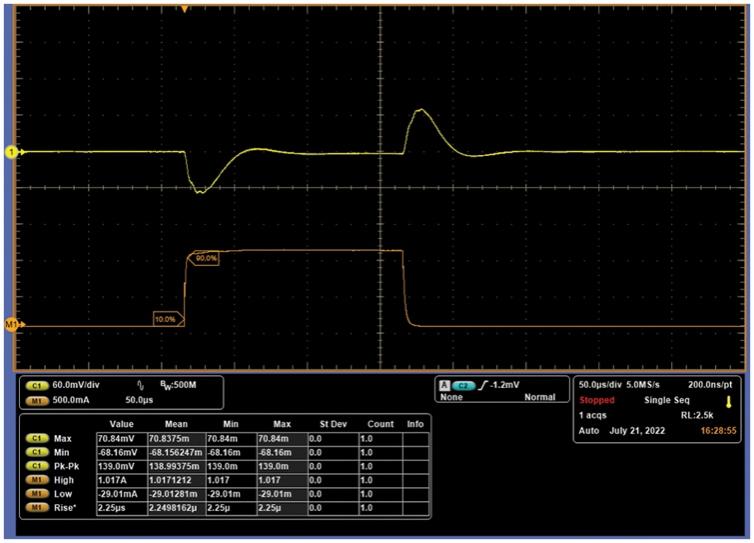圖8.VCC_3V3電壓軌負(fù)載瞬態(tài)響應(yīng)