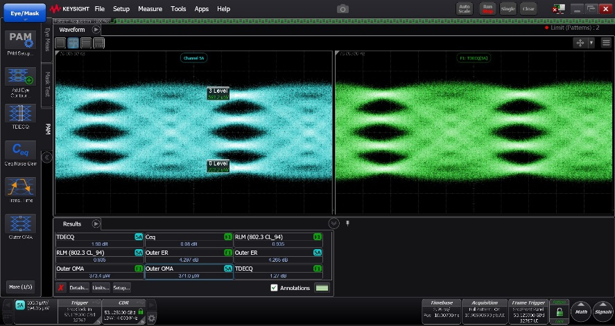 據傲科內部人士介紹,此次傲科光電將推出支持400G/800G SR4/SR8、400G/800G DR4/FR4等多種應用場景的全套LPO解決方案,其中多模LPO Driver根據業(yè)界主流VCSEL優(yōu)化設計。單模DR4/FR4 LPO方案同時支持EML,硅光PIC等不同光學方案。傲科光電單模應用LPO driver配合自研的DR4,2*FR4硅光芯片,支持20dB鏈路插損后,PAM4眼圖Outer ER>5dB,TDECQ<1.1dB,400G DR4模塊整體功耗低于4W,比傳統方案低50%以上。