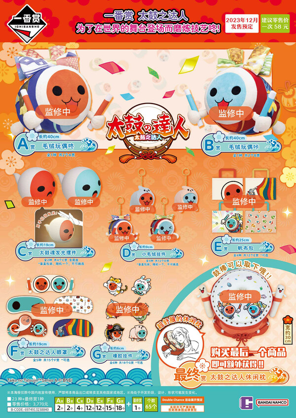 萬代南夢宮致力于打造IP軸戰(zhàn)略,用IP與粉絲相連,提升IP價值,用IP與世界相連,構(gòu)筑萬代南夢宮一體化事業(yè)。配合太鼓之達人中國版運營,一番賞聯(lián)動決定,預(yù)計2023年內(nèi)發(fā)售。