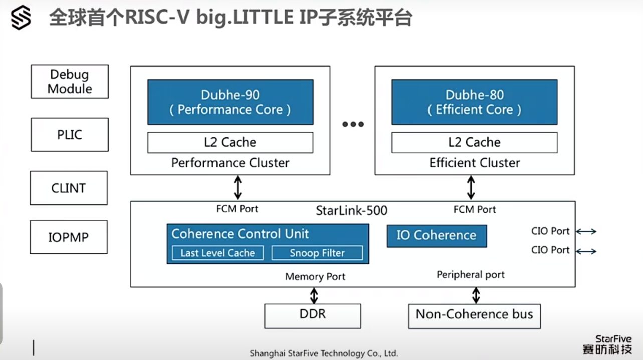 而當(dāng)RISC-V的芯片邁向高性能,要追求性能和功耗的平衡,必然要采用大小核的設(shè)計(jì)。賽昉科技就在此次峰會(huì)上,率先推出了首個(gè)RISC-V大小核IP子系統(tǒng)方案,包含賽昉科技Dubhe系列CPU IP和StarLink互連總線IP。徐滔表示,RISC-V大小核的設(shè)計(jì)方案體現(xiàn)了RISC-V本身在CPU和SoC設(shè)計(jì)上的進(jìn)步,RISC-V如果想在客戶端上和ARM競(jìng)爭(zhēng),一定或多或少會(huì)涉及到大小核設(shè)計(jì)的理念和方式。