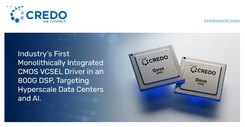 Credo推出業(yè)界首款單片集成CMOS VCSEL驅(qū)動(dòng)器的800G光DSP芯片
