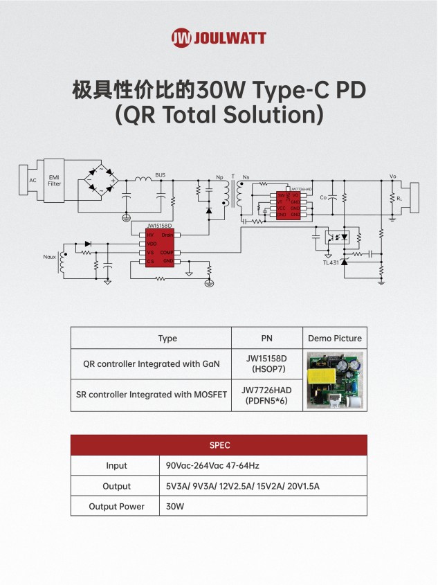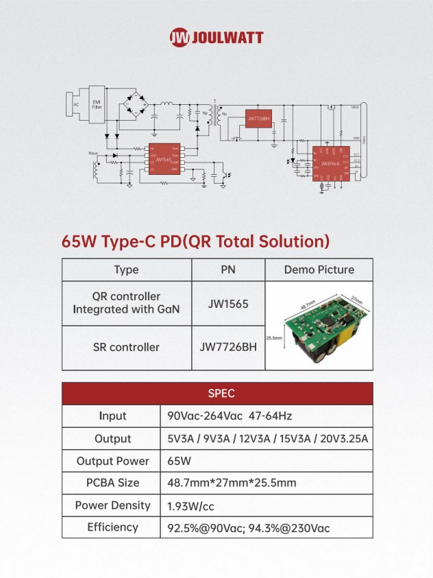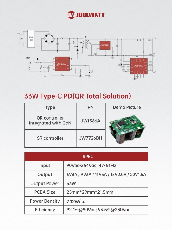 杰華特深耕快充應(yīng)用領(lǐng)域多年,擁有豐富的產(chǎn)品組合,被廣泛應(yīng)用于聯(lián)想、公牛、倍思、OPPO等眾多行業(yè)頭部客戶產(chǎn)品中。本次展出的產(chǎn)品采用GaN作為主開關(guān)器件,整體解決方案從極具性價比的20W、30W、65W到PD3.1 135W,可以滿足客戶的各類需求。