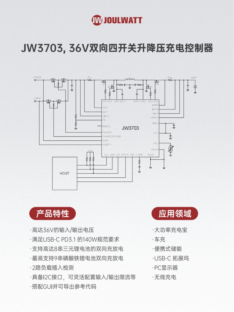 JW3703,36V雙向四開關(guān)升降壓充電控制器: