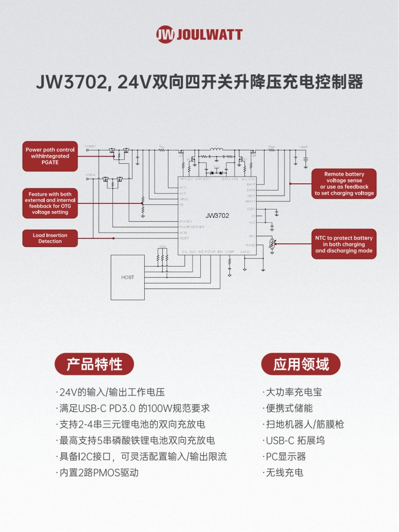 JW3702,24V雙向四開關(guān)升降壓充電控制器: