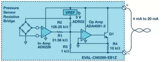 圖1.CN0289 4-20 mA環(huán)路供電壓力變送器