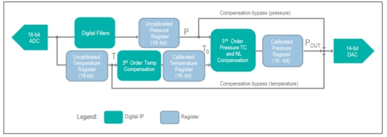 5、 4P4T:小型數(shù)字信號處理器(DSP)用于處理轉(zhuǎn)換后的傳感器數(shù)據(jù)以及溫度和非線性校正,最多可實(shí)現(xiàn)4P4T的校準(zhǔn),可去除陶瓷補(bǔ)償板以節(jié)省系統(tǒng)成本;