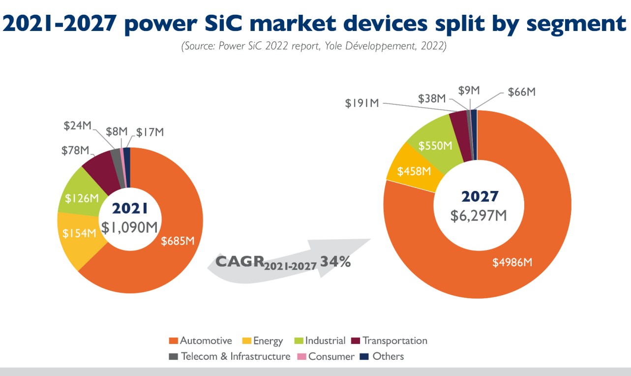 據(jù)Yole預(yù)計(jì),功率SiC市場(chǎng)規(guī)模將于2027年達(dá)到60億美元。憑借著更好的能效、開(kāi)關(guān)速度和耐壓表現(xiàn),SiC將會(huì)在電動(dòng)汽車、可再生能源、工業(yè)等高能耗領(lǐng)域發(fā)揮巨大的作用,進(jìn)一步推動(dòng)整個(gè)社會(huì)進(jìn)入可持續(xù)發(fā)展的未來(lái)。