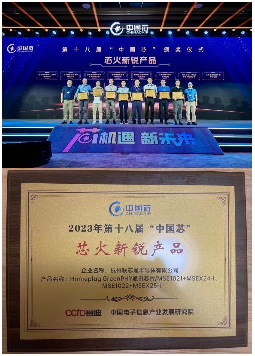 杭州市 – 2023年9月21日 – 智能充電和智能電網(wǎng)通信芯片設(shè)計(jì)公司杭州聯(lián)芯通半導(dǎo)體有限公司(簡稱聯(lián)芯通)研發(fā)的HomePlug® GreenPHY 芯片MSE1021+MSEX24-i與MSE1022+MSEX25-i,產(chǎn)品經(jīng)過競爭激烈的評(píng)選,榮獲由中國電子信息產(chǎn)業(yè)發(fā)展研究院主辦的第十八屆“中國芯”優(yōu)秀產(chǎn)品評(píng)選活動(dòng)——“中國芯”芯火新銳產(chǎn)品獎(jiǎng)。