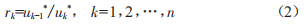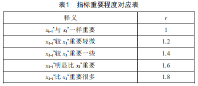 根據(jù)重要性排序,可以給出兩個(gè)相鄰評價(jià)指標(biāo)的重要性比值r,即指標(biāo)xk-1*與xk*的權(quán)重比值,其公式寫為: