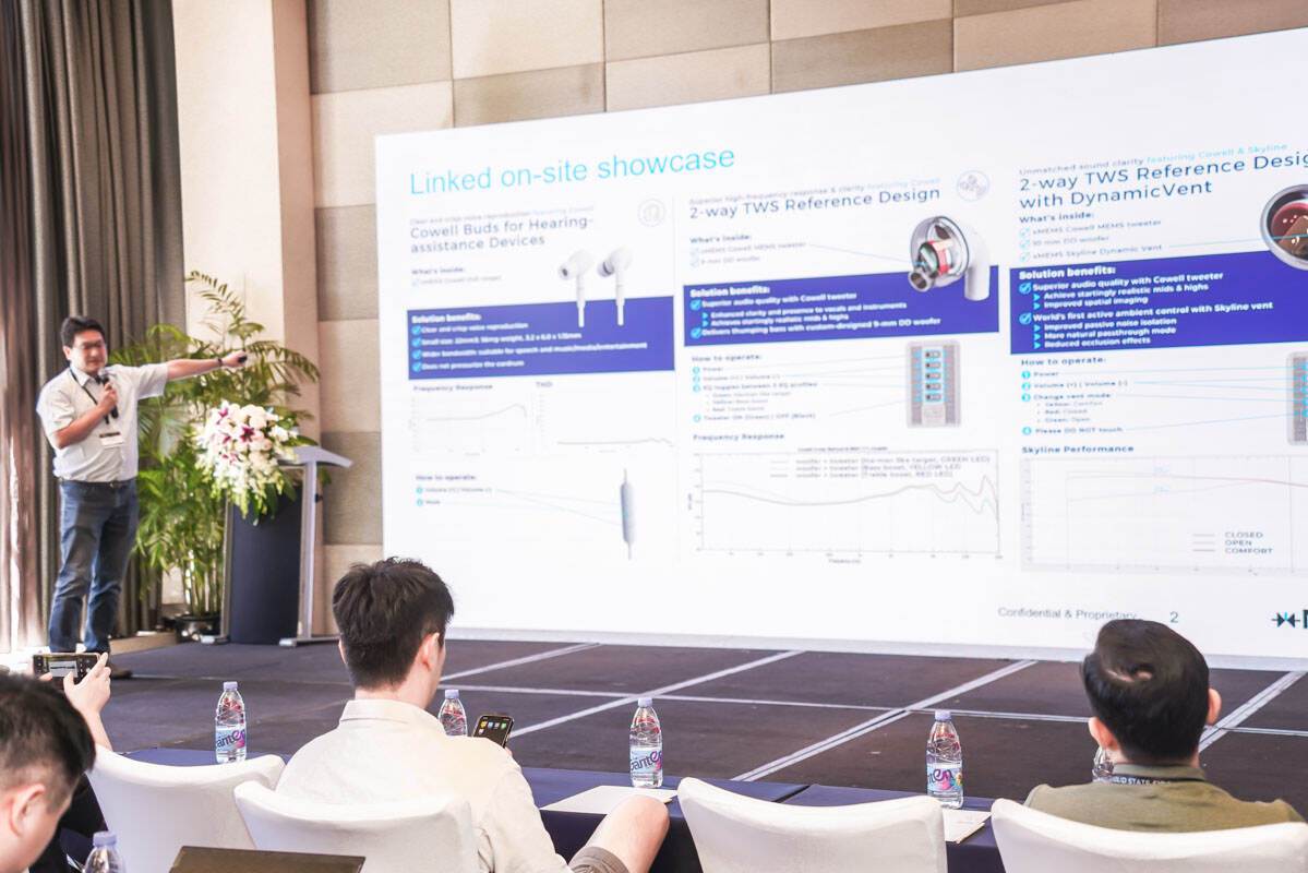 技術負責人盧延禎博士隨后帶來了技術講座,向聽眾分享了基于xMEMS Cowell揚聲器和Skyline動態(tài)閥門的產(chǎn)品設計建議。