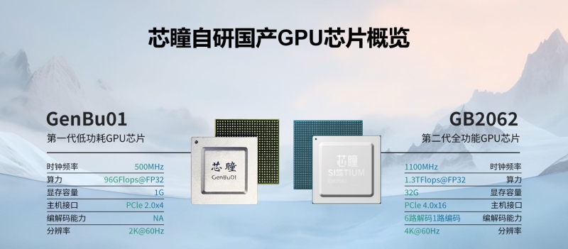 從產(chǎn)品迭代史上來(lái)看,芯瞳在2020年8月推出了第一代GPU芯片GenBu01,這款具有里程碑意義的一款通用GPU采用了自主知識(shí)產(chǎn)權(quán)的統(tǒng)一渲染架構(gòu)設(shè)計(jì),支持2D和3D圖形渲染,功耗僅3w,可應(yīng)用于嵌入式計(jì)算及設(shè)備、辦公電腦和定制化場(chǎng)景所需顯示設(shè)備等。而本次發(fā)布會(huì)是基于第二代自研GPU-GB2062打造的板級(jí)產(chǎn)品,相比第一代更具跨時(shí)代的意義。