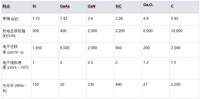 以下列表包含部分常見和未來的WBG半導體材料: