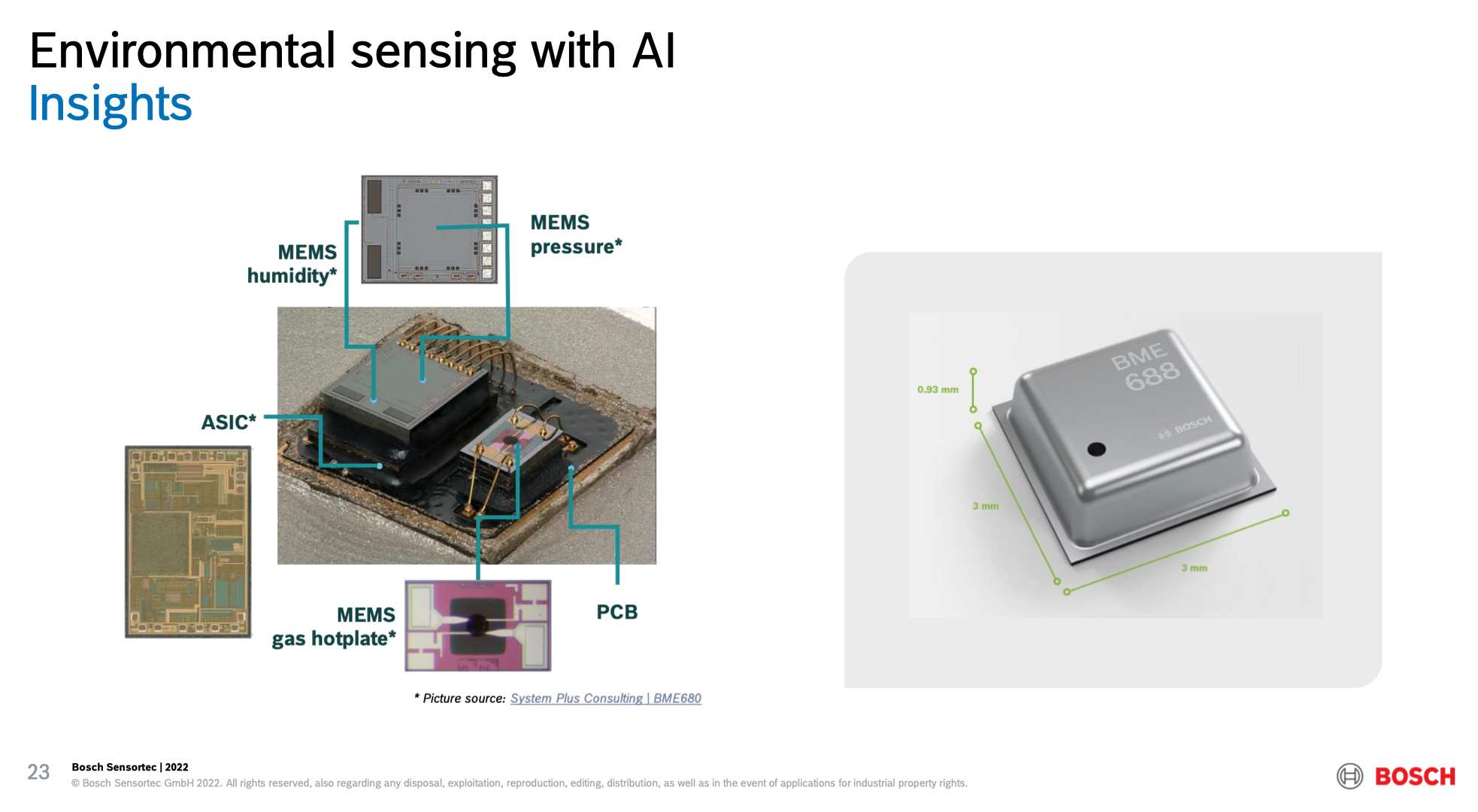 BME 688是博世最新推出的環(huán)境傳感器,它集成了溫度、氣壓、濕度、氣體四類檢測(cè)功能,也是目前世界上最小的四合一環(huán)境傳感器。
