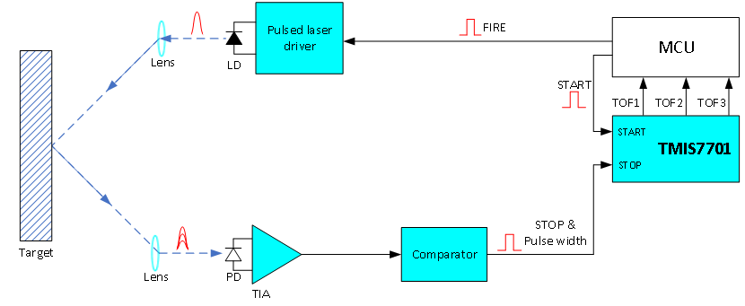 TMIS7701應(yīng)用于飛行時間測距/激光雷達示意圖