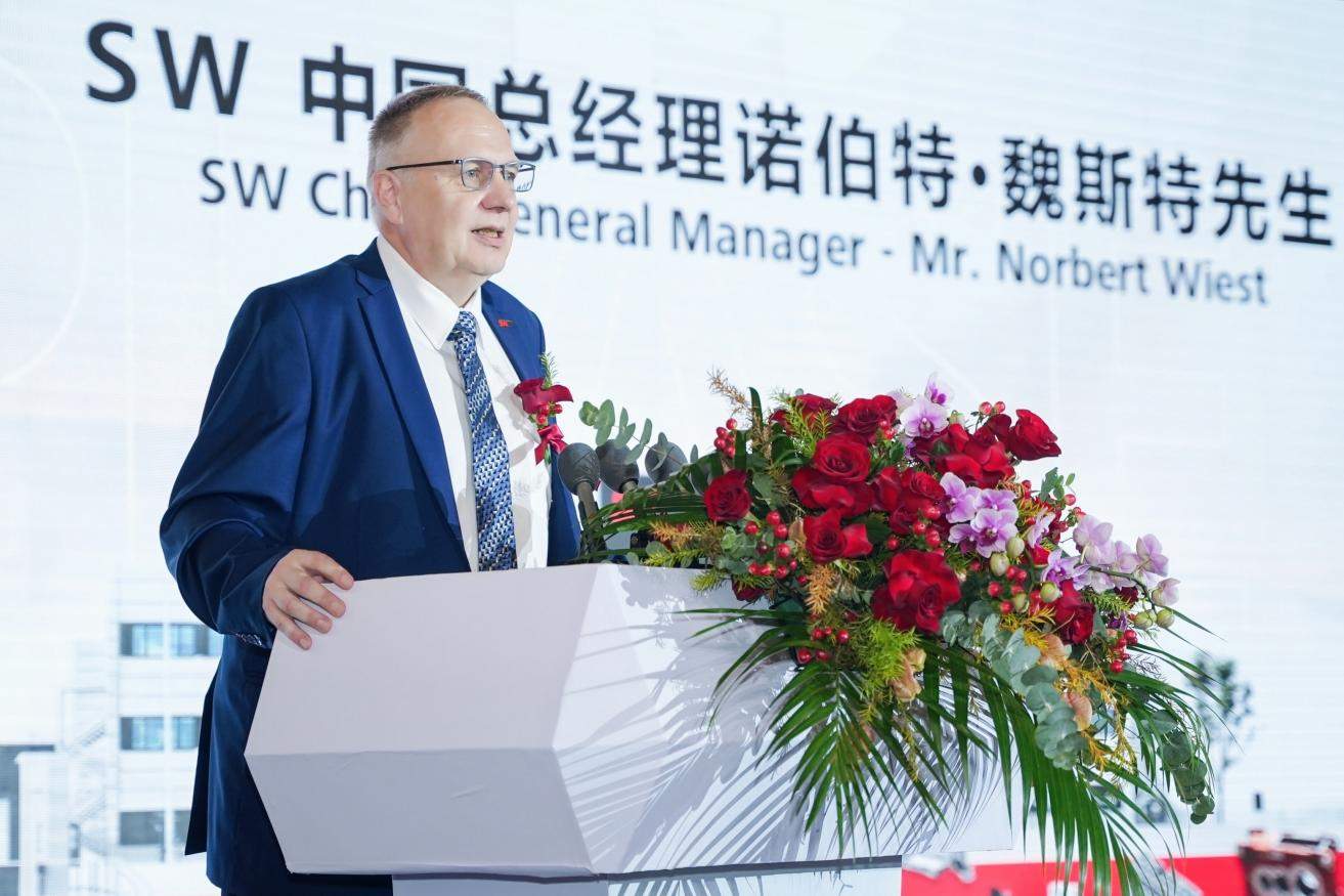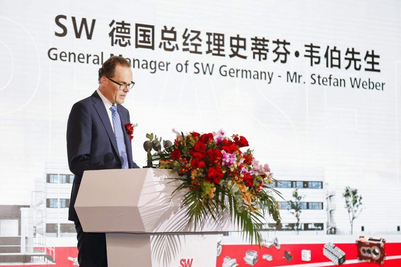 圖3:SW 德國總經(jīng)理兼董事會成員Stefan Weber先生在開業(yè)典禮上對二期工廠的落成表示了祝賀。