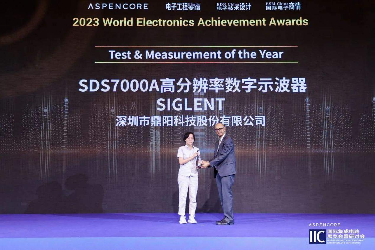 鼎陽科技本次參展展品SDS7000A系列數(shù)字示波器除了受到工程師們廣泛關(guān)注外,在與IIC國際集成電路會議同期舉辦的全球電子成就獎(jiǎng)的頒獎(jiǎng)典禮上,SDS7000A亦以其強(qiáng)悍的性能斬獲由ASPENCORE主辦的全球電子成就獎(jiǎng)——年度測試與測量獎(jiǎng)。