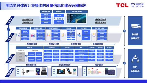“而行業(yè)管理手段的缺失,給質(zhì)量管理帶來諸多難點。在半導(dǎo)體設(shè)計業(yè),普遍面臨著質(zhì)量管理業(yè)務(wù)運行不順暢、質(zhì)量數(shù)據(jù)缺乏集中管理環(huán)境、質(zhì)量數(shù)據(jù)不能被有效應(yīng)用、質(zhì)量實現(xiàn)各階段缺乏橫/縱向協(xié)同、集團質(zhì)量管理中缺乏有效手段等管理痛點?!?基于此,趙志認為,半導(dǎo)體設(shè)計工廠質(zhì)量管理業(yè)務(wù)要從以下四方面進行規(guī)劃: