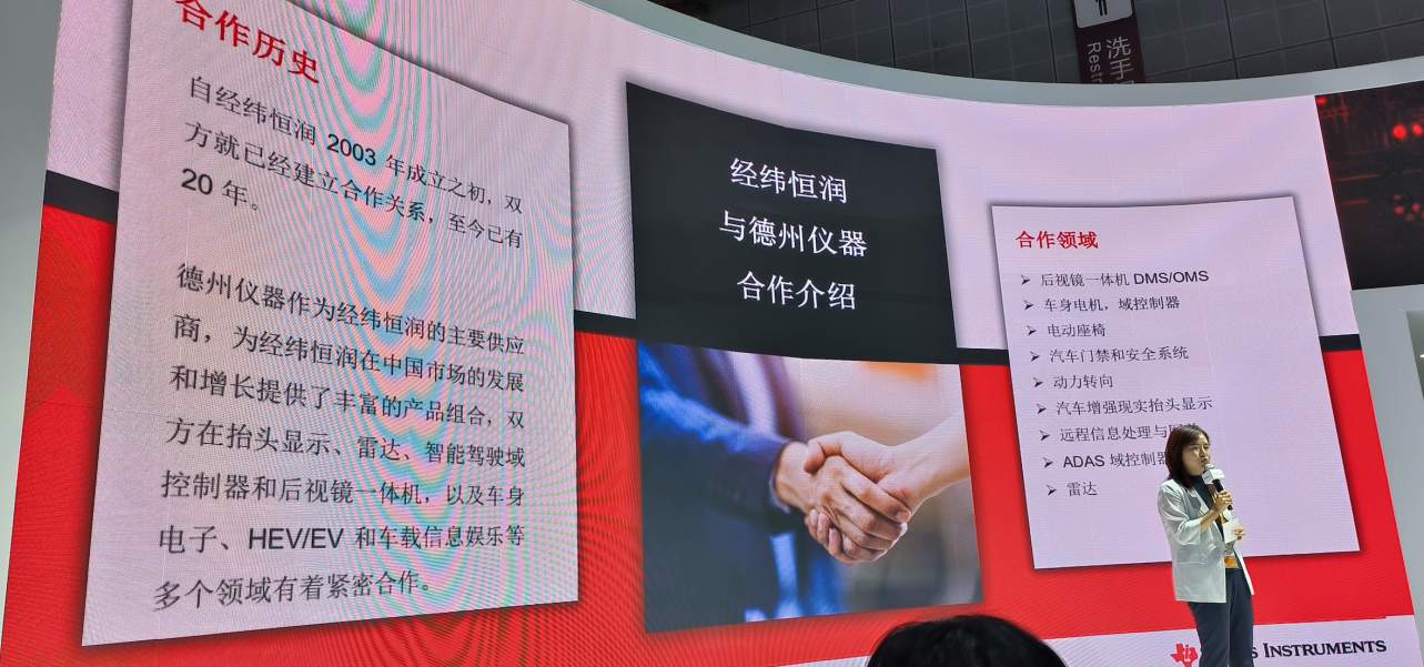 經(jīng)緯恒潤是國內(nèi)領先的Tier1方案商,針對智能座艙、智能駕駛、毫米波雷達,經(jīng)緯恒潤都有全方位的解決方案,而且都選用德州儀器的高端處理器系列。在此次第六屆進博會上,雙方也是聯(lián)合進行了一系列的新品發(fā)布。