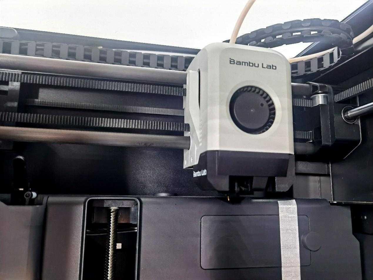 拓竹Bambu Lab P1S這款機(jī)器的運(yùn)動(dòng)架構(gòu)是采用CureXY,運(yùn)動(dòng)軸為X碳纖管Y金屬圓桿,Z軸三絲桿,運(yùn)作起來也比較穩(wěn)定。拓竹Bambu Lab P1S機(jī)身內(nèi)部配備了兩個(gè)散熱風(fēng)扇。