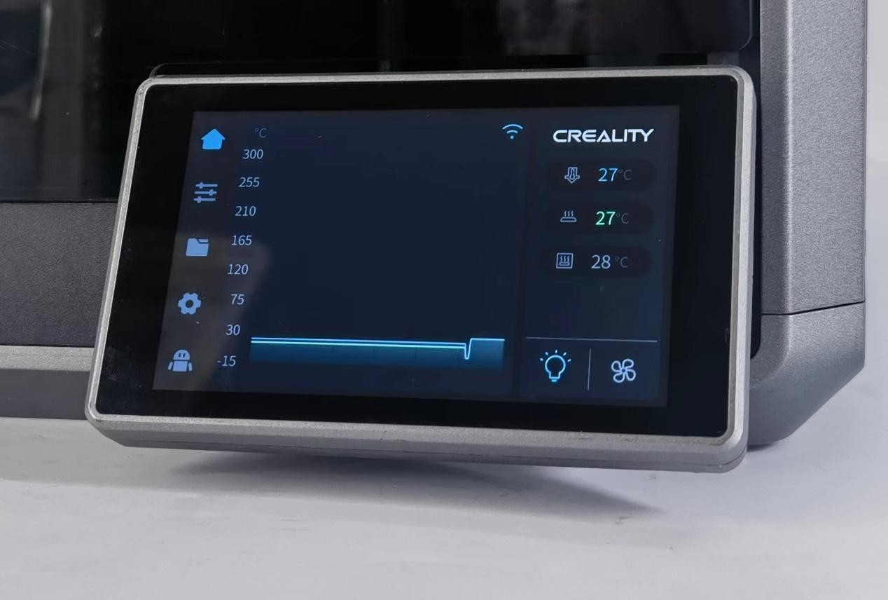 ELEGOO愛樂酷Neptune 4 Pro和創(chuàng)想三維K1都配備了4.3英寸彩色觸控屏,拓竹Bambu Lab P1S的屏幕則是2.7英寸,192×64分辨率屏幕,比較簡單。從操作體驗(yàn)來看,顯然前兩者要由于拓竹P1S。