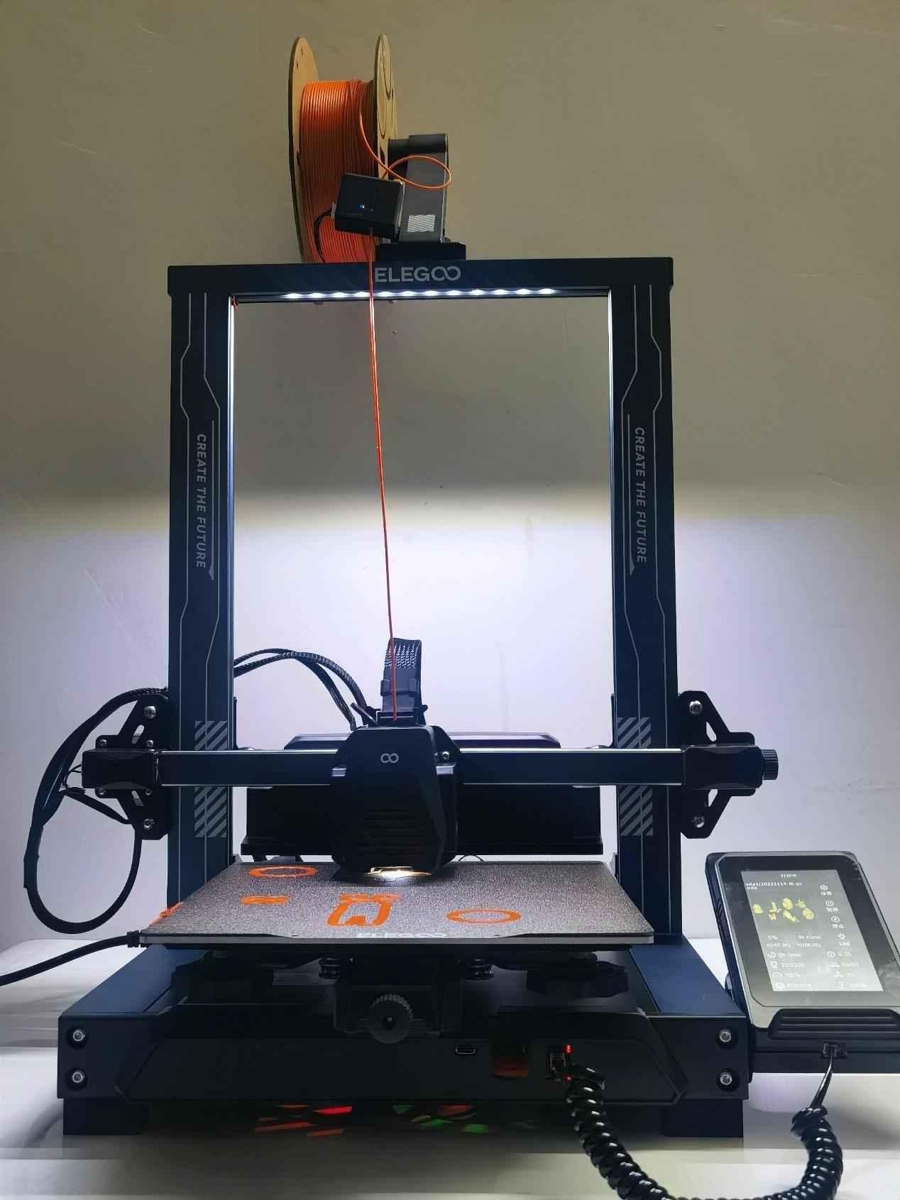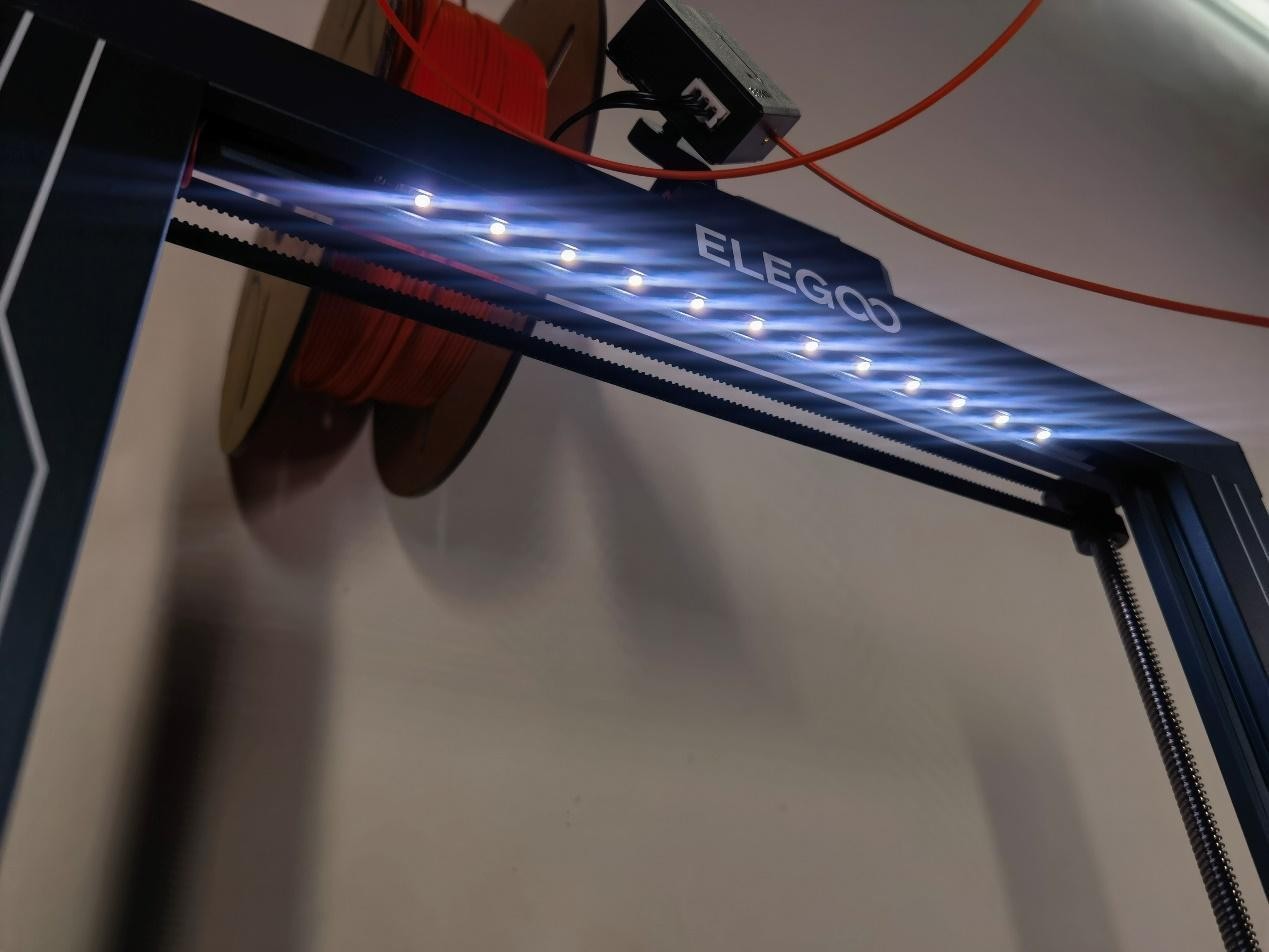 在燈光方面,ELEGOO愛樂酷Neptune 4 Pro設(shè)置了兩處,一處是頂部橫梁LED燈條,另一處在喉管還有一個(gè)模型燈,可以非常方便查看模型打印情況。