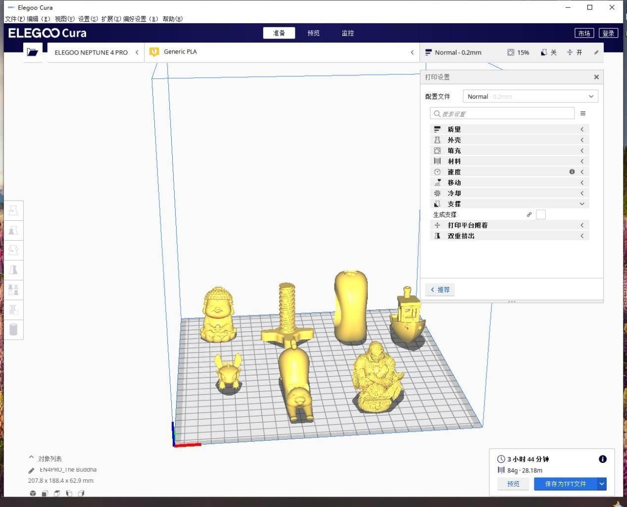 ELEGOO愛樂酷Neptune 4 Pro調(diào)平完畢,下面就是開始三臺(tái)機(jī)子正式的打印測試體驗(yàn)了。在此之前,需要將要打印的模型進(jìn)行切片操作。