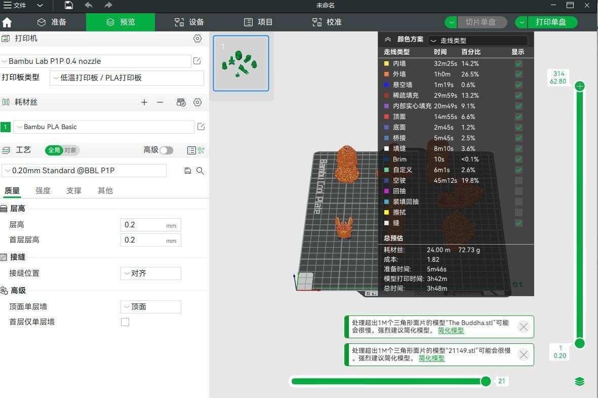 圖:拓竹Bambu Lab P1S Bambu Studio切片軟件界面