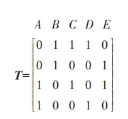 由圖2搜索樹(shù)原理,可得到最小連集及其矩陣。最小連集為(B,E)(A,D)(A,C,E)(B,C,D),連集矩陣為: