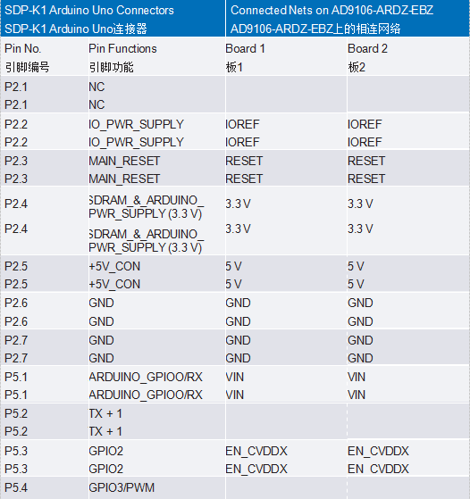 表1.SDP-K1和兩個AD9106-ARDZ-EBZ板的板對板連接