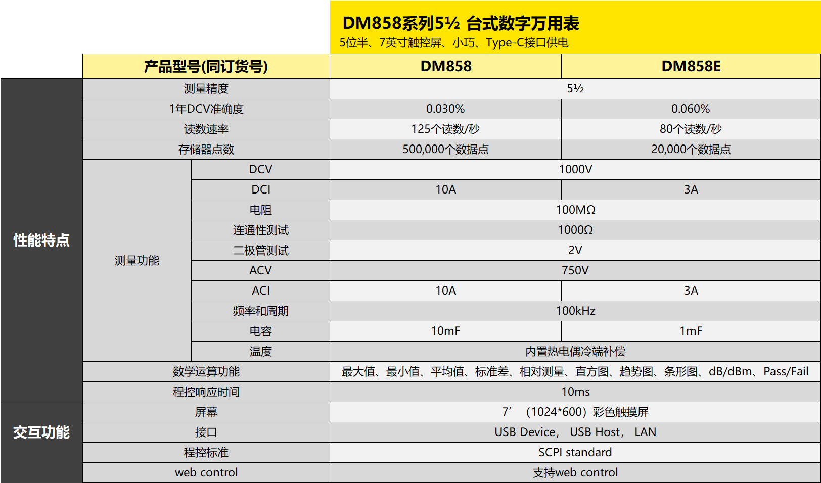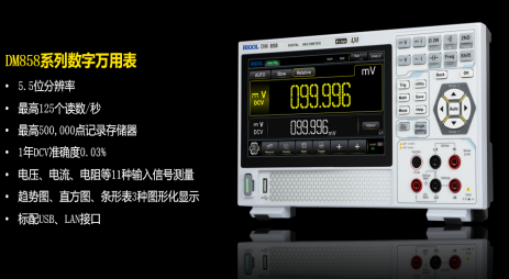 此外,DM858系列提供五位半的精準(zhǔn)讀數(shù),測(cè)量速率最高可達(dá)每秒125個(gè)讀數(shù),實(shí)現(xiàn)更快速的測(cè)量和記錄。其強(qiáng)大的記錄存儲(chǔ)器容量高達(dá)500,000點(diǎn),為用戶提供更廣泛的記錄空間。