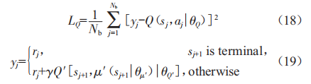 DDPG算法通過Actor網(wǎng)絡(luò)μ(s|θμ)、目標(biāo)Actor網(wǎng)絡(luò)μ/(s|θμ/)、critic網(wǎng)絡(luò)Q(s,a|θQ)與目標(biāo)critic網(wǎng)絡(luò)Q/(s,a|θQ/)實現(xiàn)智能體的訓(xùn)練。在訓(xùn)練過程中,critic網(wǎng)絡(luò)通過損失函數(shù)LQ更新網(wǎng)絡(luò)參數(shù):