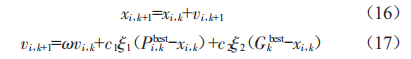 作為一種經(jīng)典的群體智能算法,PSO算法通過模擬自然界的鳥群捕食來實現(xiàn)優(yōu)化問題的求解。具體而言,粒子群中的所有粒子都被分配了速度與位置,通過粒子個體在解空間單獨尋優(yōu)pt,進而求得全局最優(yōu)解Gest。在選代過程中,粒子的位置xi,k與速度vi,k可由下式更新: