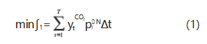 1)碳排放最小。為充分消納光伏,提高充電站的能源自給率與碳減排效益,本文考慮電網(wǎng)動態(tài)二氧化碳排放因子,將充電站碳排放最小作為優(yōu)化目標(biāo)之一。