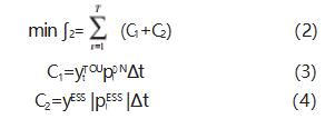運行成本最低。光儲充電站通過能量管理系統(tǒng)對站內(nèi)能量流動進行控制,從而降低整站的運行成本,其中運行成本可以分為向電網(wǎng)購電成本以及儲能損耗成本兩部分: